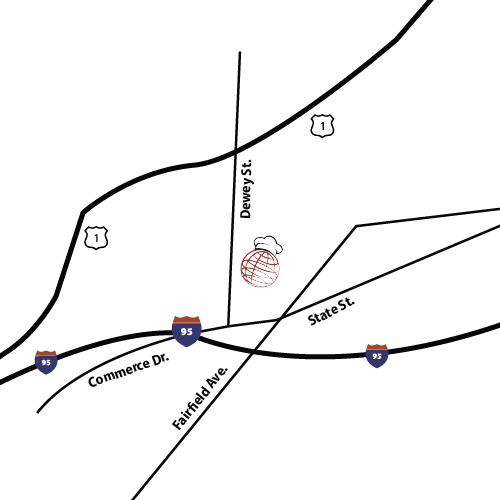 1/2 mile off Exit 25 of I-95 in Bridgeport, Connecticut